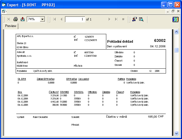 Každá pokladna má svůj analytický účet. Každý řádek pokladny i hlavička obsahují cizí měnu.